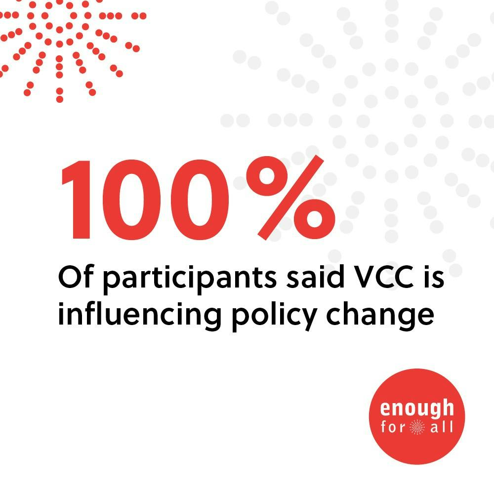 • Build VCC’s capacity as backbone by increasing engagement and coordination with Champions. While progress has been made, this has been a consistent recommendation since 2016. Strengthened engagement amongst the Champions will improve our collective efforts and our evaluation data.